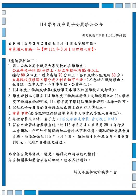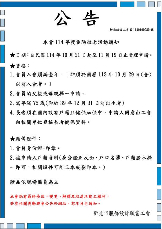 ●LINE官方帳號ID:@mne3180x ●FB搜尋:新北市服飾設計職業工會